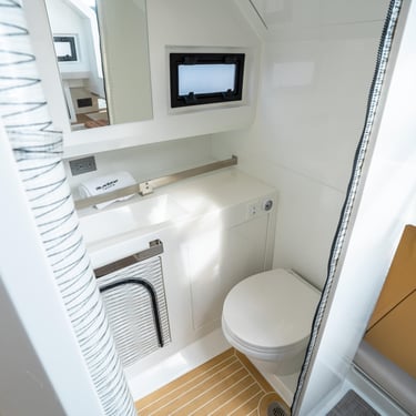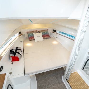 Confort interior: Equipado con dos camarotes y un baño independiente, ofrece espacio para hasta cuatro personas. El interior está diseñado con materiales de alta calidad y detalles que brindan una atmósfera acogedora y elegante.