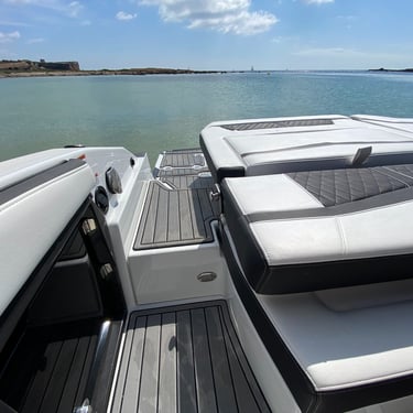 Rendimiento: Con una eslora de 8,13 metros y una manga de 2,59 metros, esta embarcación está propulsada por un motor Mercruiser 6.2L 300 CAT de 300 CV, alcanzando una velocidad de crucero de 25 nudos y una máxima de 35 nudos, permitiéndote explorar las islas con rapidez y estilo.